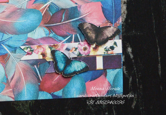 I have cardstock and pattern paper for this base. The pattern paper is from Indie Chic collection from Papericious. To embellish the layout I have used the die cut sheet which come with the collection.